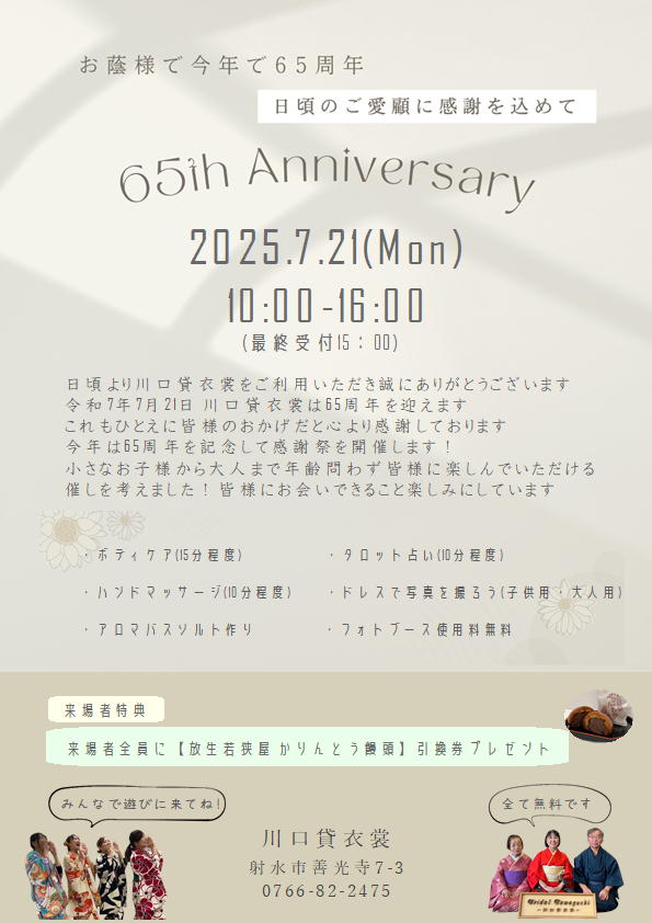 川口貸衣裳65周年を記念して感謝祭を開催します